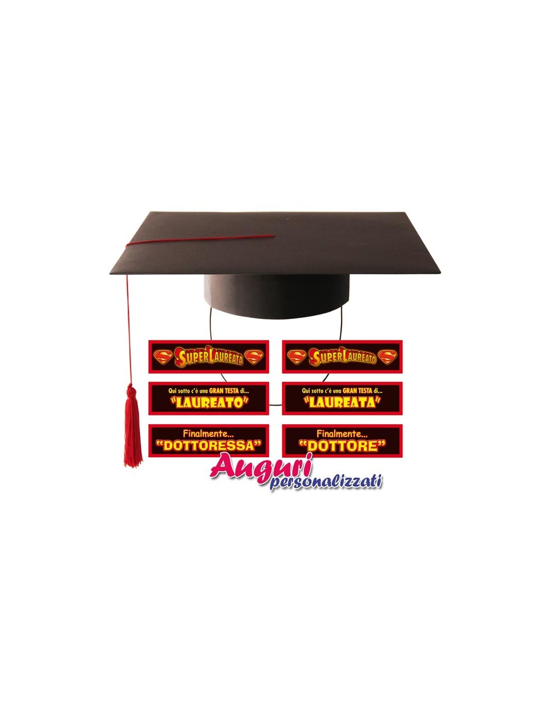 Cappello per laureati in cartone con 6 adesivi da applicare a scelta, con un biglietto d'auguri manuale del laureato/a.