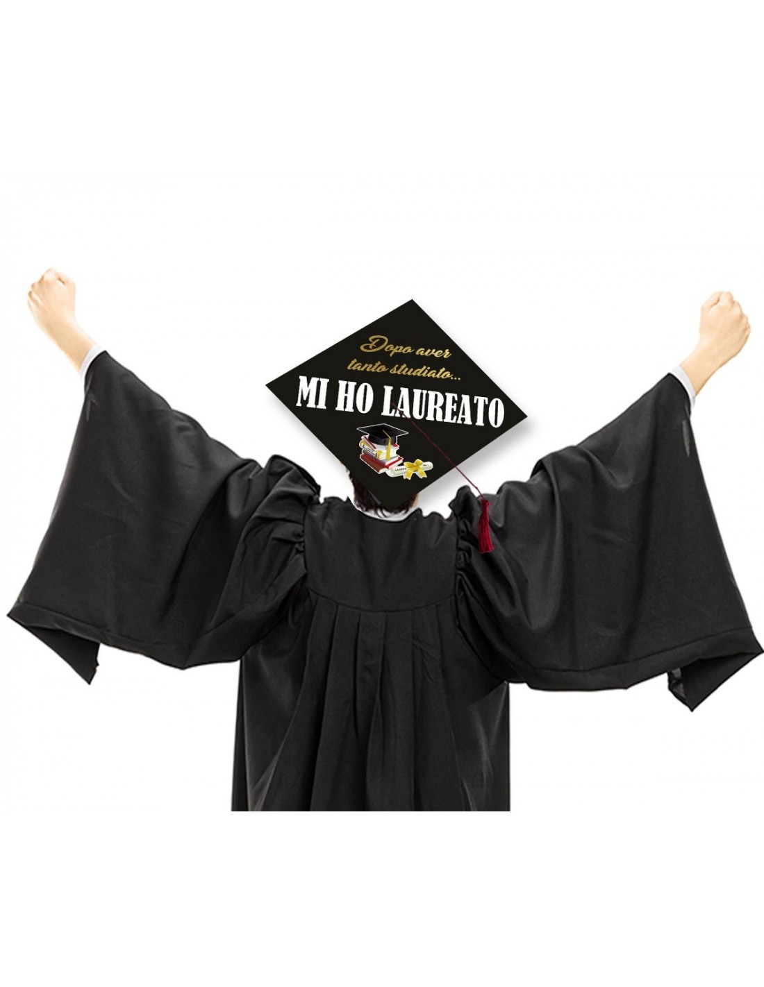 Il tuo regalo per la laurea di un amico o amica diventa speciale solo scegliendo il cappello per laurea "Dopo aver tanto studiato...Mi ho laureato", un esilarante gadget che lascerà tutti senza parole. Il simpatico tocco di laurea riproduce le sembianze del classico cappello destinato ai laureandi ma impreziosito da scritte ironiche che simulano errori grammaticali. Sottolinea con stile e humor come il neo-dottore ha trascorso le ore sui libri, scatenando risate e commenti al momento dell'apertura dei regali.