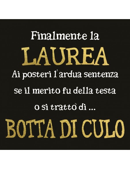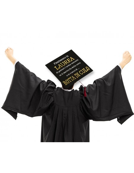 Il cappello finalmente la laurea è un simpatico gadget da regalare a tutti coloro che hanno raggiunto nella propria vita questo importantissimo traguardo. Con questo cappello sarà possibile festeggiare il neolaureato/a ironizzando sulle sue capacità di come sia arrivato a questo punto della sua vita. Se hai amici, parenti o persone speciali che stanno per laurearsi non farti perdere questo spiritosissimo gadget per fare i tuoi auguri.