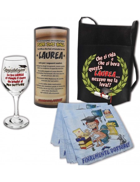 Evvivaaaa… abbiamo un neo Dottore da festeggiare e per i brindisi di Laurea, ecco il kit esclusivo del Laureato: