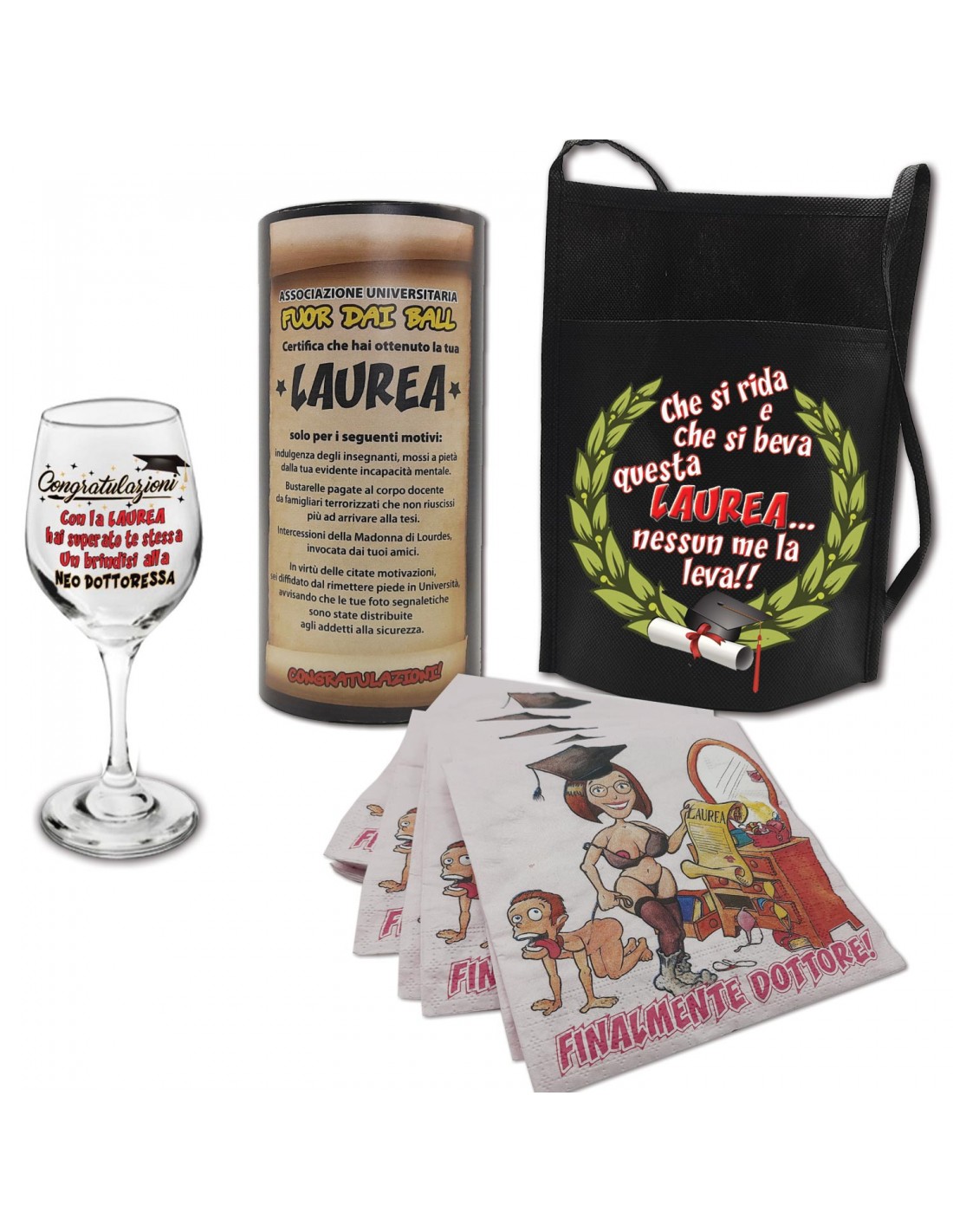 Evvivaaaa… abbiamo una neo Dottoressa da festeggiare e per i brindisi di Laurea, ecco il kit esclusivo della Laureata: