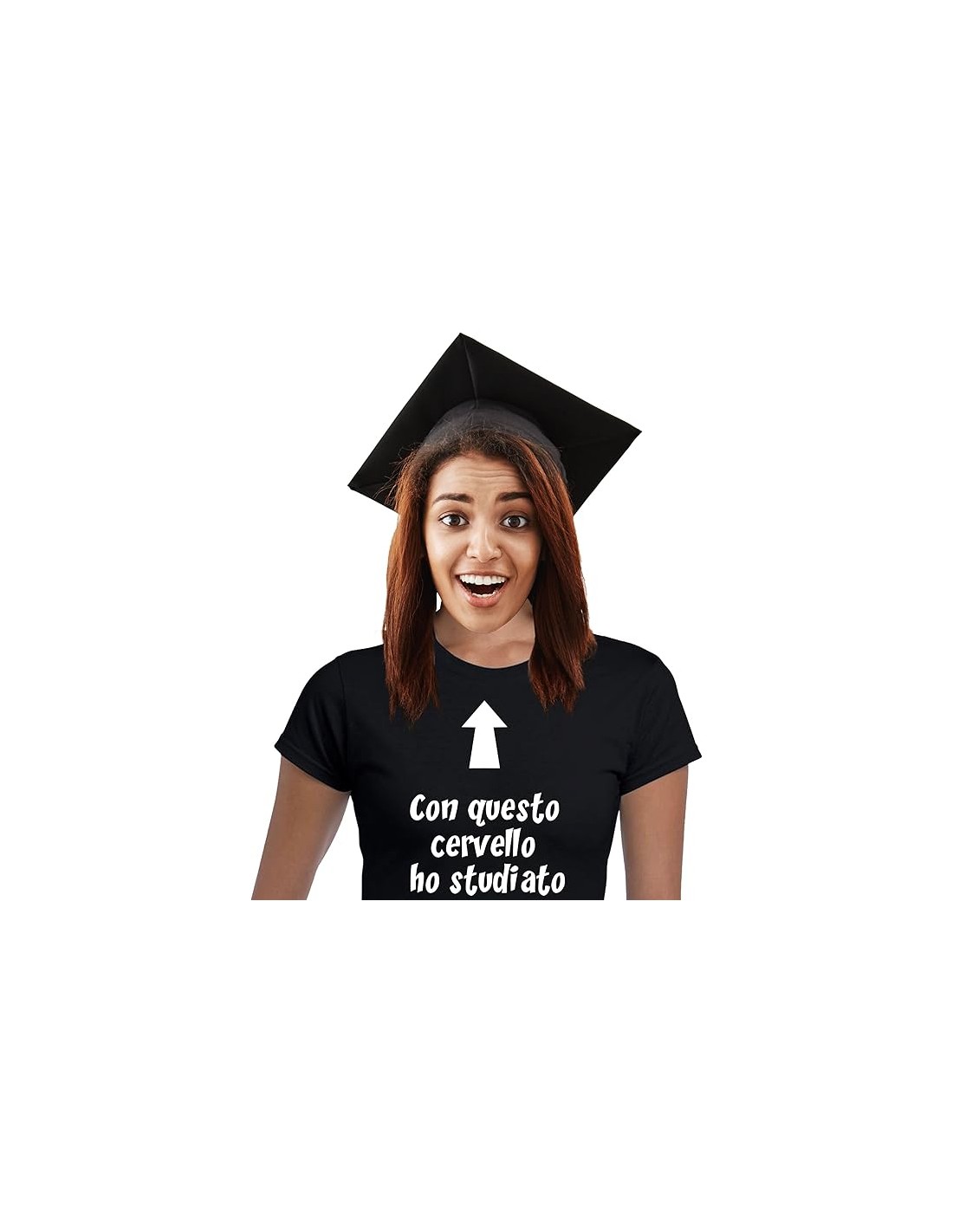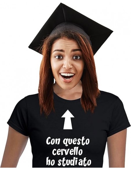 In questo caso un finto tocco di laurea in cartone nero con fiocco penzolante, stampato all’interno con frasi divertenti, diventa un’ironica confezione che contiene una T-shirt  nera stampata davanti e dietro con una sarcastica ed  ironica dedica per una neo laureata.