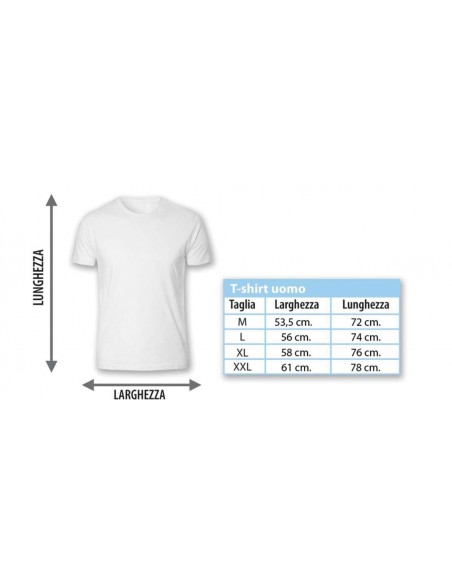 Per la scelta delle taglia raccomandiamo di confrontare le misure di una vostra t-shirt con quelle indicate nella Tabella Taglie nelle immagini.