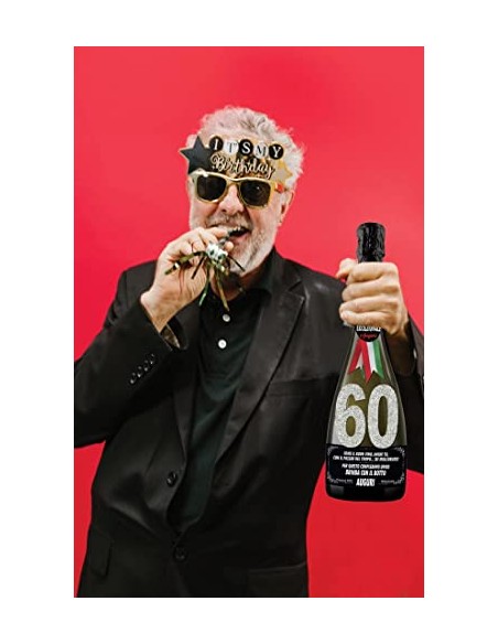 OCCASIONE: Bottiglia di Prosecco con etichette personalizzate con l'età del festeggiato, ideale per il primo cin cin da scatenato 60enne