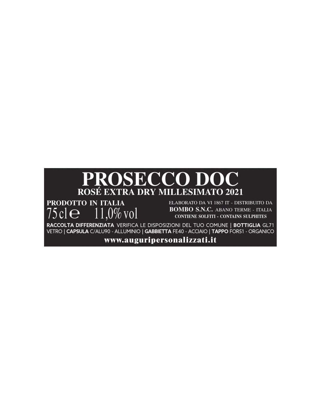 Per riempire questa nostra bottiglia dall’etichetta augurale spiritosa abbiamo scelto il Prosecco Millesimato Extra Dry, perché la sua esuberante effervescenza è simbolo di allegria, è apprezzato da giovani e “stagionati” e servito principalmente durante eventi e festeggiamenti importanti, come il raggiungimento di un traguardo importante come l'arrivo dei 70 anni, perché le cosiddette frizzanti bollicine che contengono anidride carbonica, permettono al tappo di essere praticamente “sparato” dal collo della bottiglia, creando il famoso “botto” PORTAFORTUNA.
