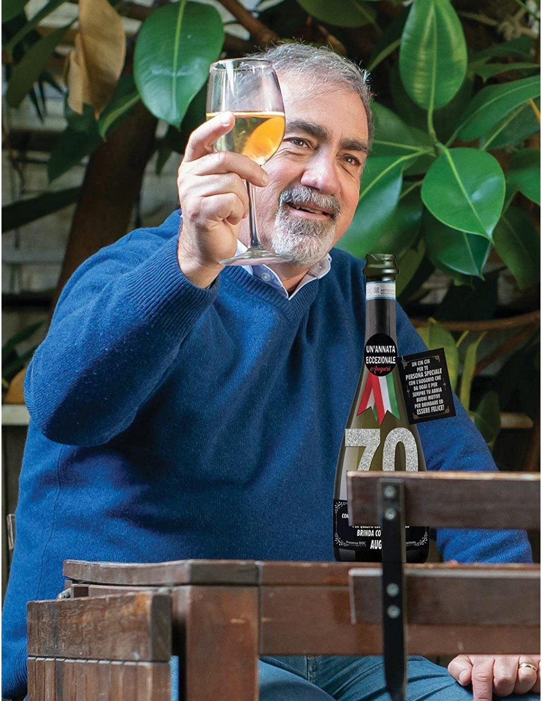 OCCASIONE: Bottiglia di Prosecco con etichetta personalizzata con l'età del festeggiato, ideale per il primo cin cin da scatenato 70enne