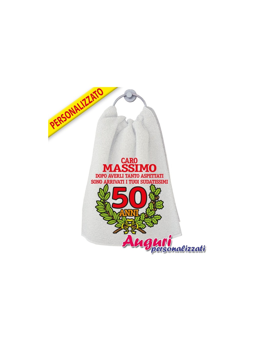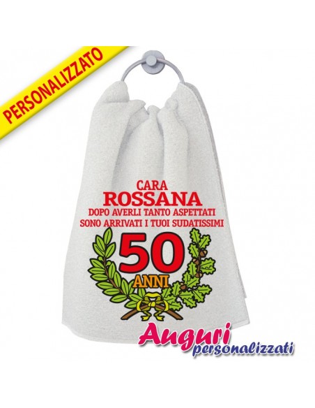 Il tuo amico compie 50 anni e non sai cosa regalargli per il fatidico giorno? Scegli l'asciugamano personalizzato con il nome del 50enne e il successo è assicurato.