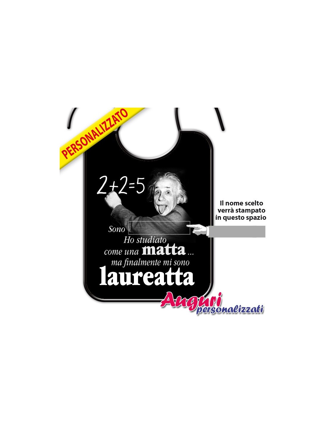 Il Bavaglione Laurea Personalizzato ( cm. 45 x 60 ) è la soluzione perfetta per ogni Neo Dottoressa: ironico, simpatico e personalizzabile con il tuo nome, ti protegge durante i festeggiamenti più movimentati.