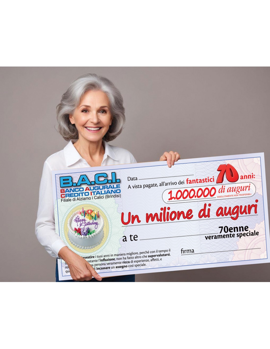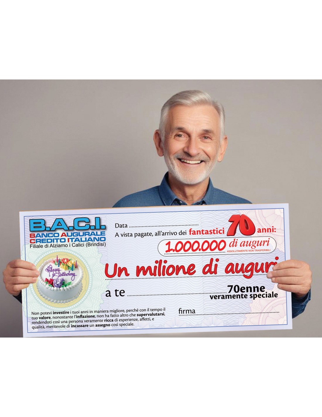 Dedica i tuoi auguri a un 70enne speciale e regala il Maxi assegno per i 70 anni.