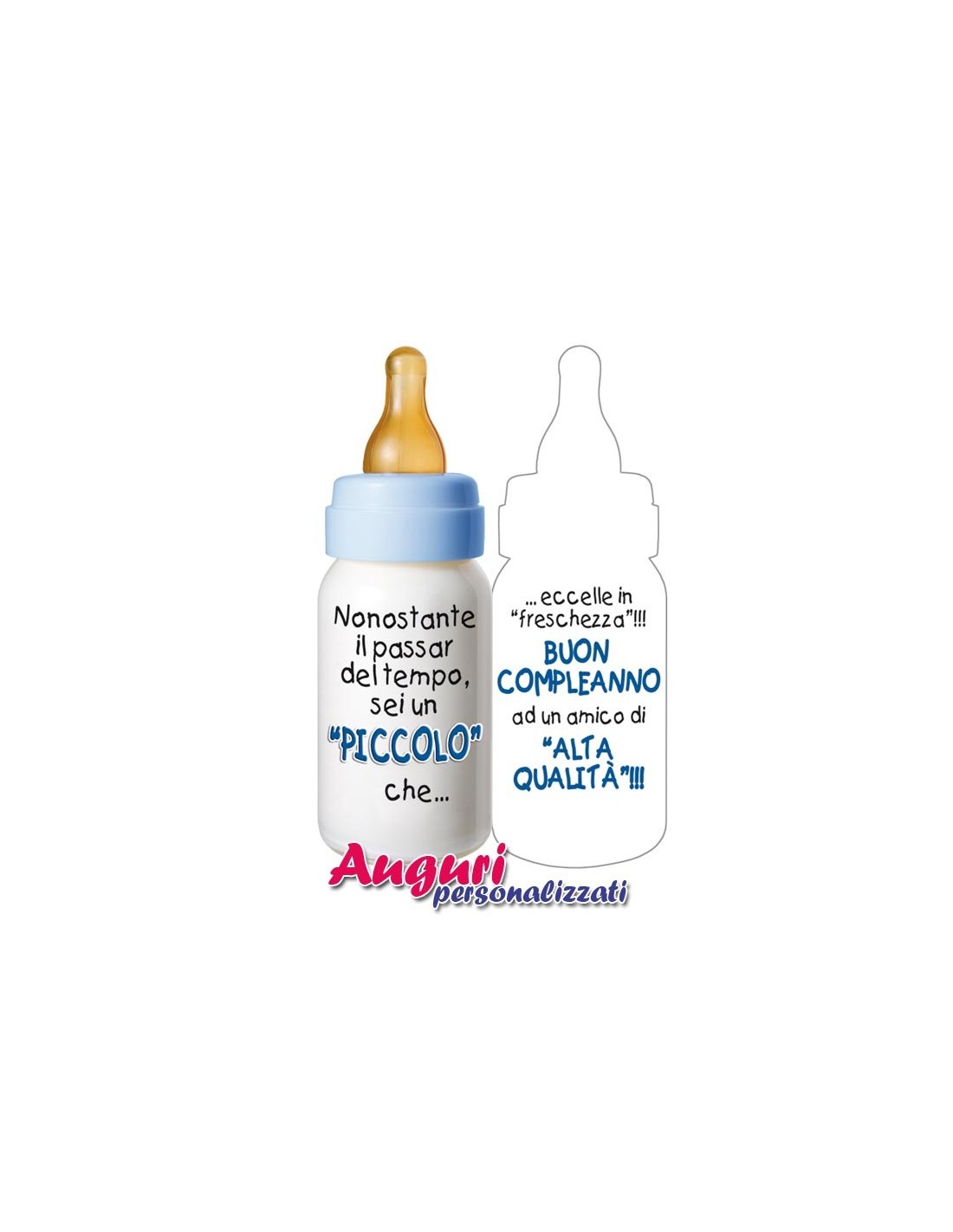 Vuoi fare gli auguri di compleanno ad un amico usando un biglietto originale, simpatico ed allegro? Il Biglietto biberon per il compleanno di un amico è perfetto! Un messaggio comune, come gli auguri per il diciottesimo anno di età, ma usando un estroverso biglietto, dalla forma di biberon, che farà nascere un sorriso sulla bocca del festeggiato. Non lasciarti scappare l’occasione di fare gli auguri con un biglietto brioso, particolare e certamente originale!
