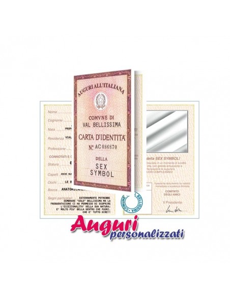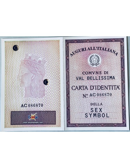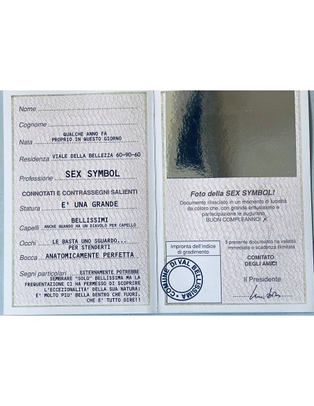Realizzato in cartoncino plastificato color beige, proprio come il vecchio documento d’identità, ma con un tocco di ironia che farà ridere tutti.