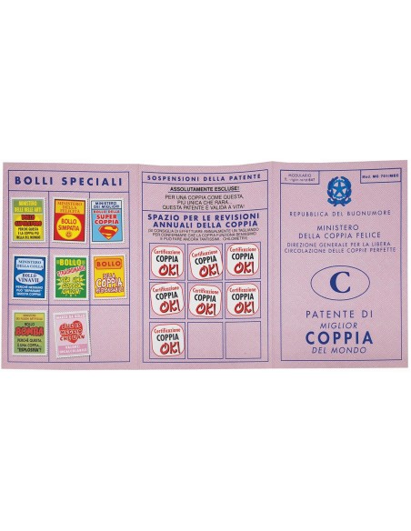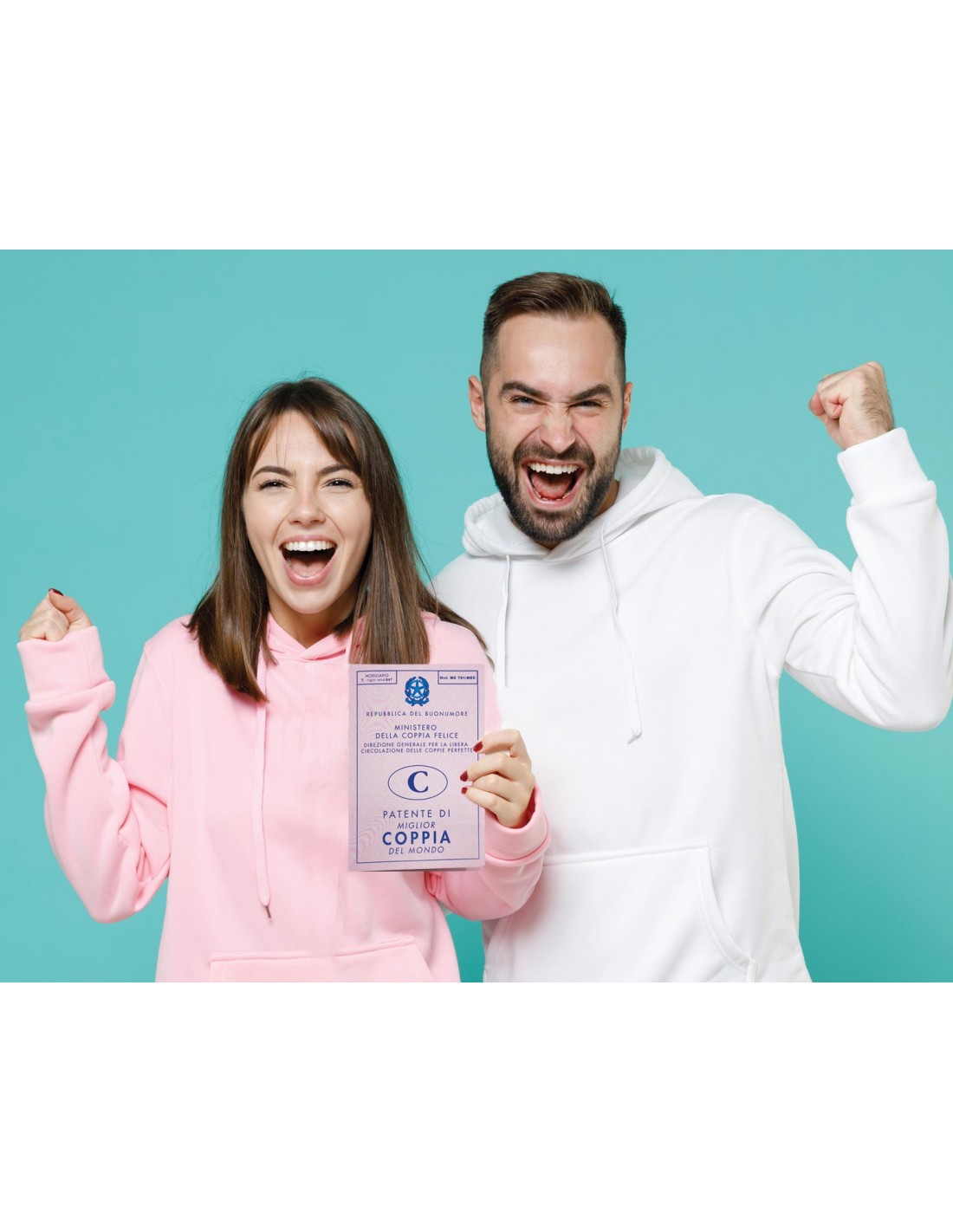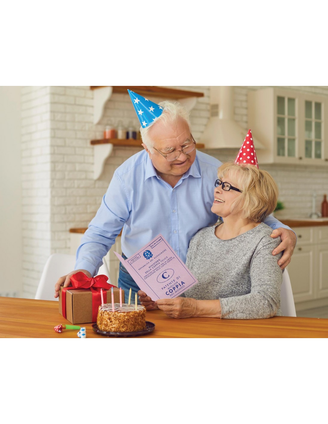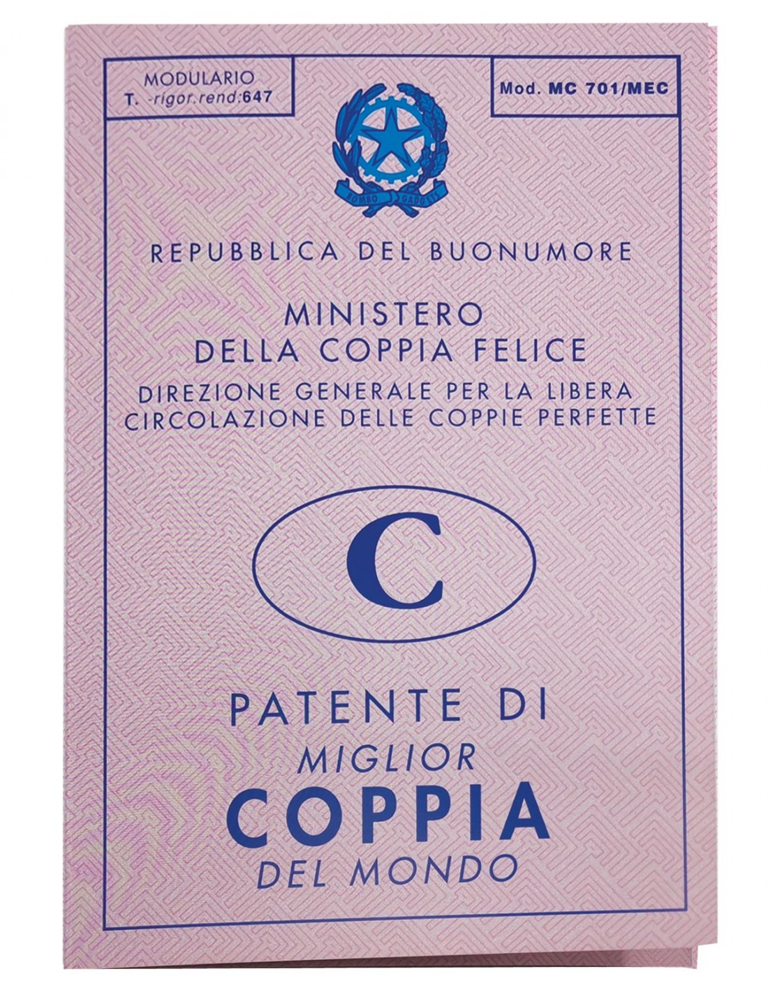 Trasforma gli auguri di Matrimonio, Anniversario o di affetto per due persone che si amano davvero, in un momento di pura ilarità con la nostra fantastica "Patente di Miglior Coppia del Mondo"