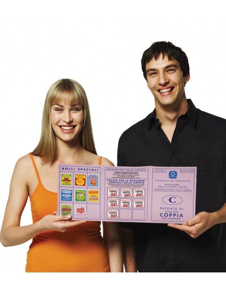 Dai a questa coppia innamorata una "guida" divertente per continuare verso un futuro sempre più felice: con la Patente di Miglior Coppia del Mondo, il viaggio verso la felicità sarà senza limiti di velocità (ma con molta prudenza, ovviamente!).