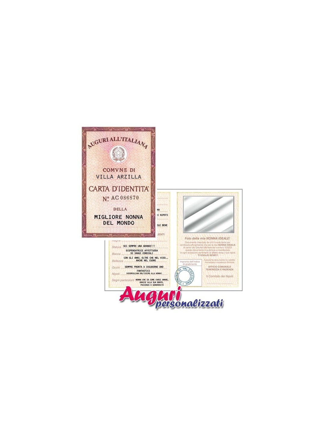 Un simpatico biglietto che imita le vecchie carte d’identità italiane, con all’interno tante descrizioni ironiche e affettuose che celebrano la Nonna: dai suoi occhi sempre attenti, ai consigli saggi, fino alla pazienza infinita...o quasi.