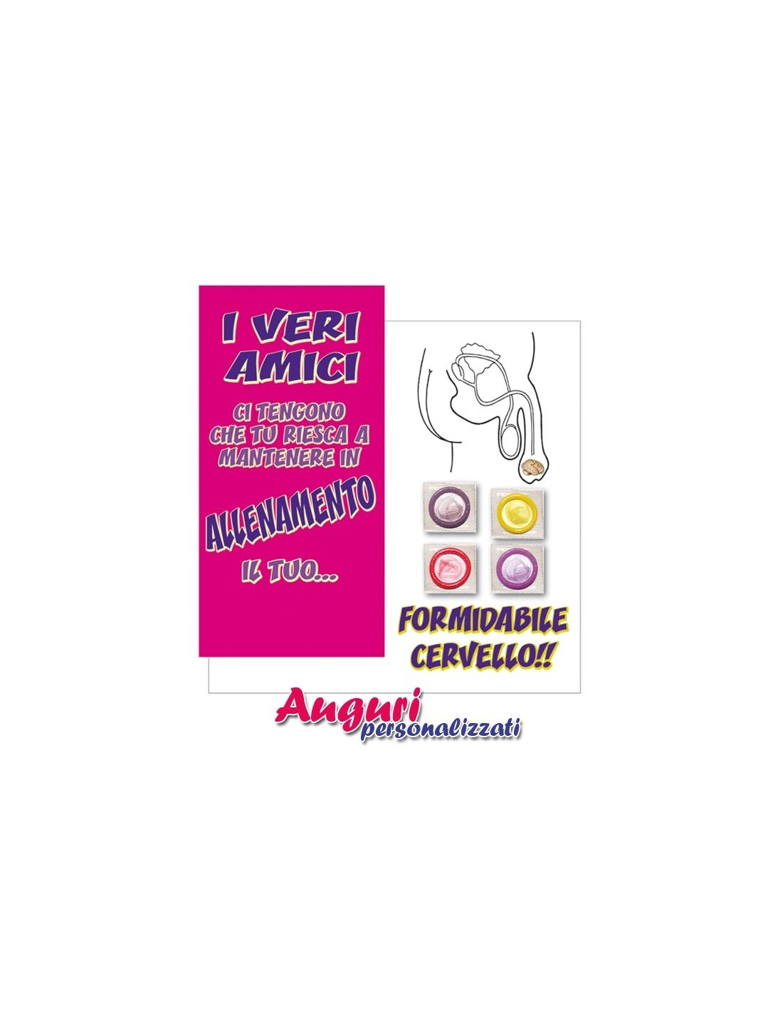 Biglietto condom "I veri amici ci tengono che riesca a mantenere in allenamento il tuo...".