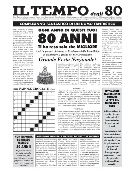 Il Tempo degli 80, per l'arrivo degli 80 anni di un uomo non potrai trovarlo in edicola, ma e' l'edizione straordinaria piu' originale e ironica che si possa trovare in commercio.