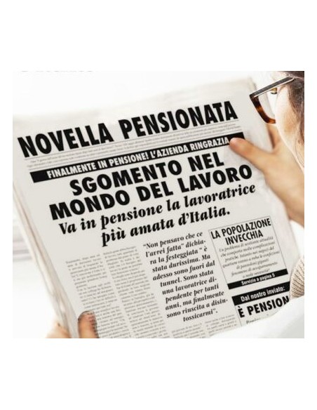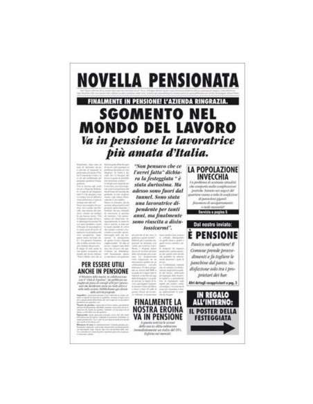 Ricalcato sui modelli dei classici Quotidiani venduti in tutte le edicole, sarà un perfetto bigliettone augurale per la tua cara amica, collega o parente che dopo anni di lavoro e sacrifici, finalmente potrà godersi la tranquillità e dedicandosi alla sua famiglia e ai suoi hobby.