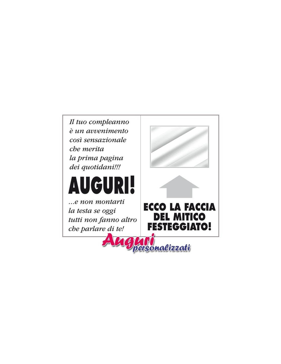 Il giornale di auguri per il compleanno di lui è perfetto per rallegrare la festa e passare momenti piacevoli in compagnia grazie agli articoli divertenti e pieni di ilarità. È grande come la prima pagina di un giornale e la prima pagina ricorda l'impaginazione proprio di un quotidiano. Nel retro è presente una carta specchio dove il protagonista della festa potrà ammirare il volto del mitico festeggiato. Sul lato, invece, c'è l'invito a non montarsi la testa anche se oggi tutti parlano di lui.