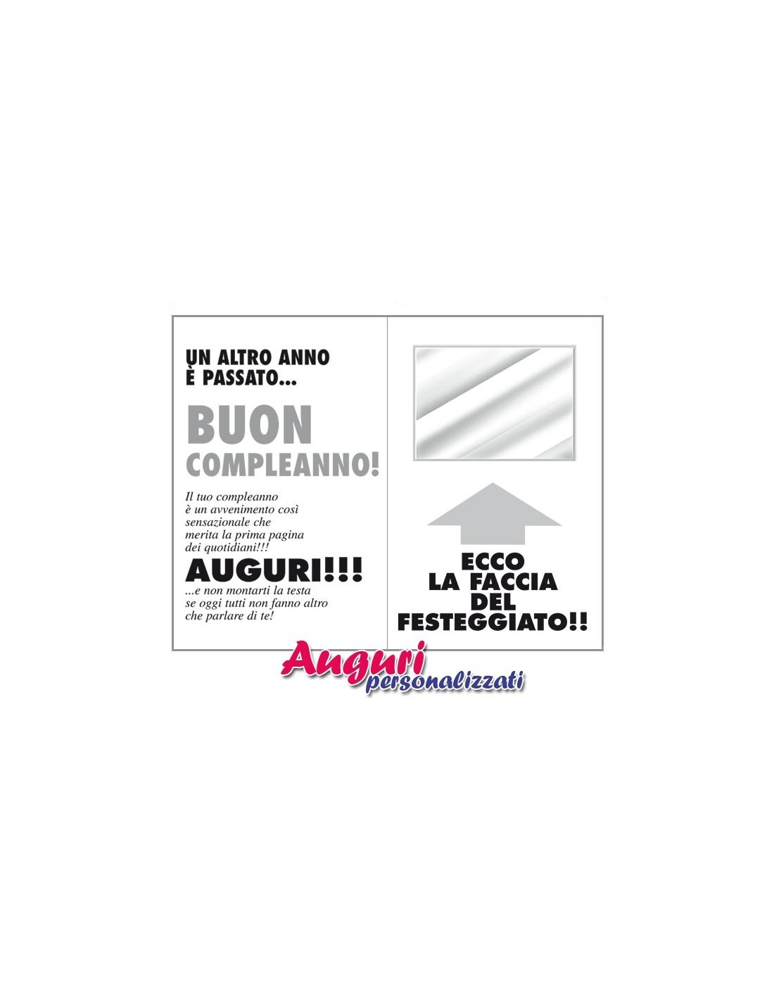 Eventualmente sullo stesso spazio, successivamente, sara’ possibile applicare una foto del festeggiato, rendendo cosi’ il biglietto ancora piu’ personale