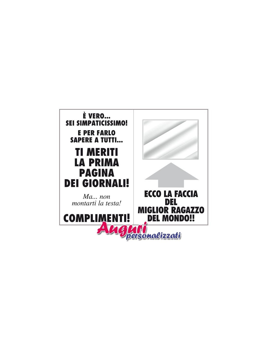 Un vero e proprio bigliettone pieno di complimenti il cui contenuto strapperà ben più di un sorriso a chi lo ricevera' in dono, animando ancora di più la festa.
