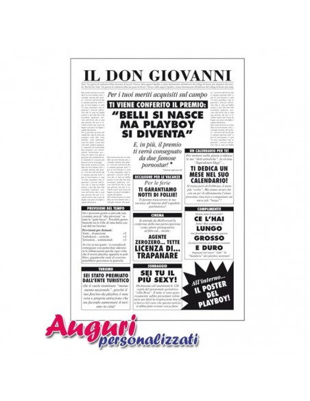 Quotidiano “Il Don Giovanni” con un'intera prima pagina sarà a lui dedicata, decantando le lodi del vero playboy a cui sarà consegnato il premio direttamente da due pornostar. Queste sono solo alcune delle notizie divertenti che sarà possibile leggere sul biglietto di auguri pensato per chi ama conquistare.