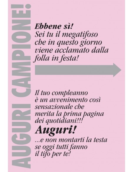 Il giornale di auguri per il compleanno di uno juventino ricorda la forma di un vero giornale quotidiano dalle dimensioni di cm. 32 x 49 e il classico color rosa della famosa Gazzetta.