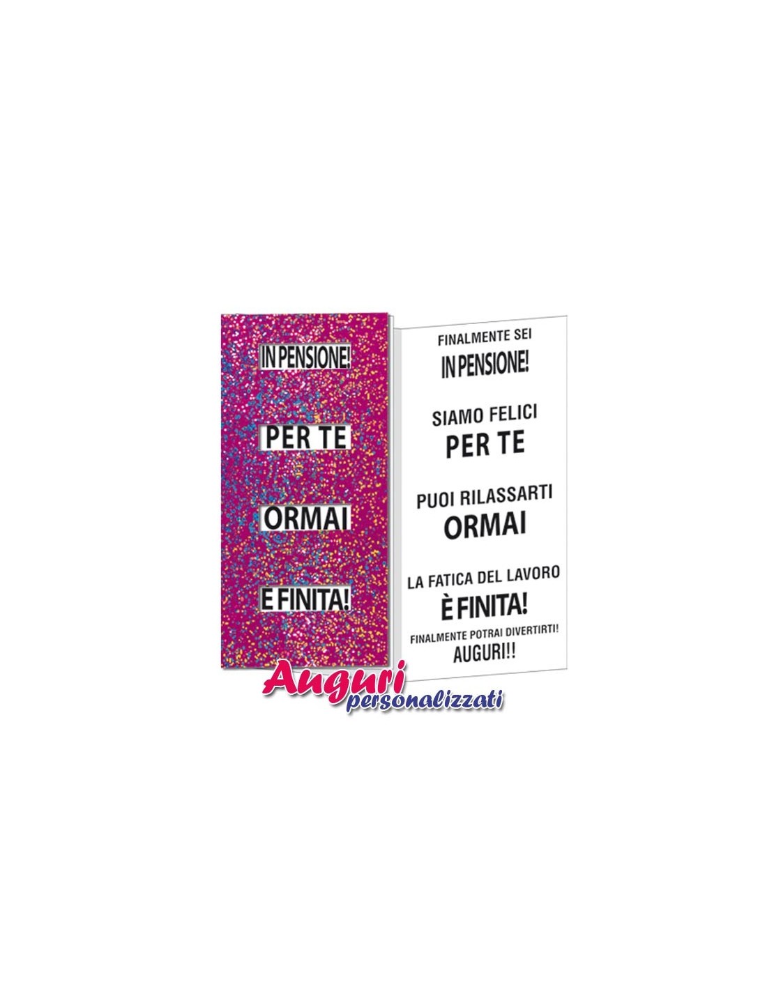 Un biglietto originale e versatile adatto a festeggiare l’arrivo del pensionamento di colleghi, amici o parenti e, magari per accompagnare un bel brindisi di saluto..
