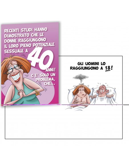 Un pensiero sexy, ironico e intelligente per festeggiare l’arrivo dei 40 di una parente, di una collega o dell’amica, con grinta, umorismo e un pizzico di pepe!