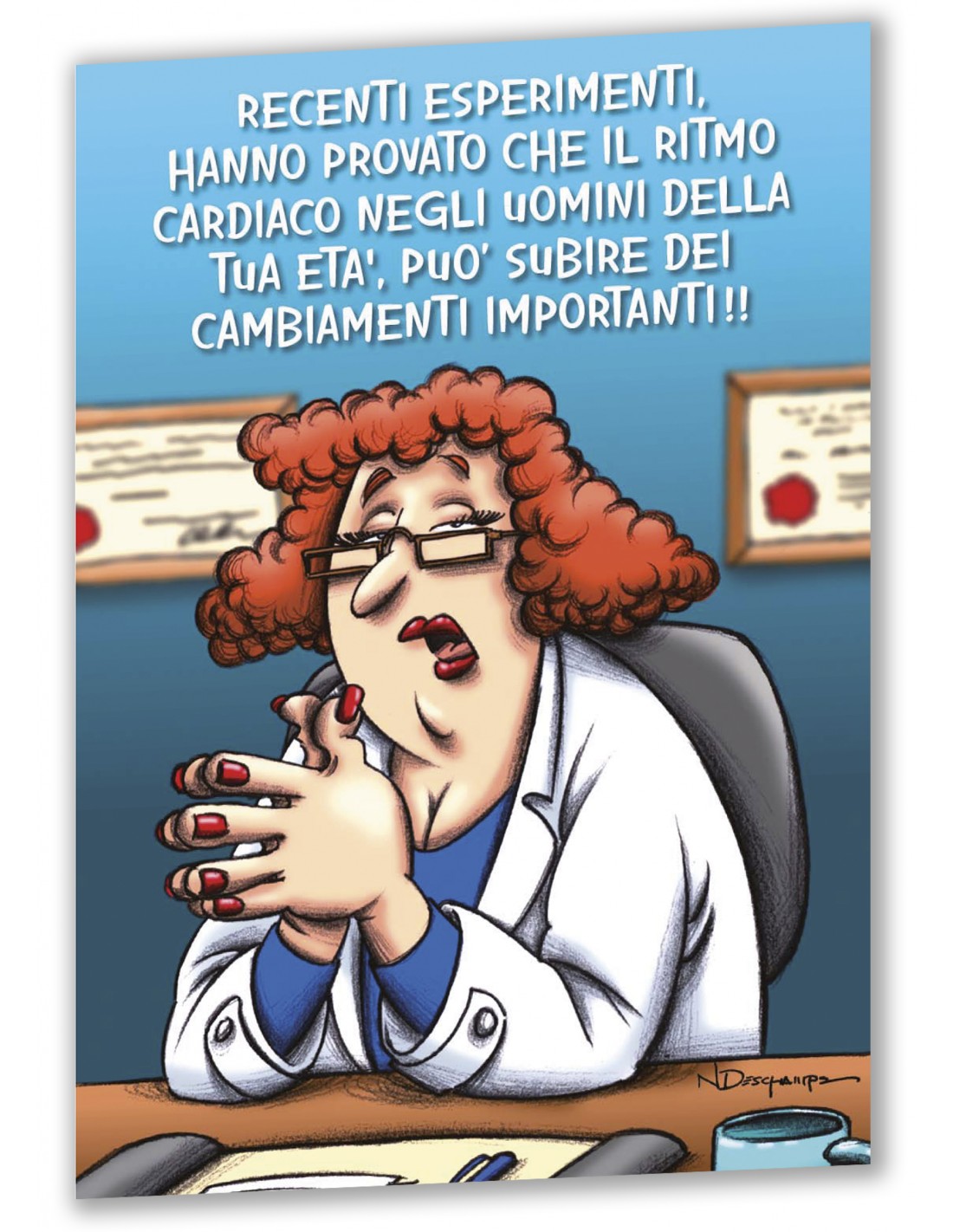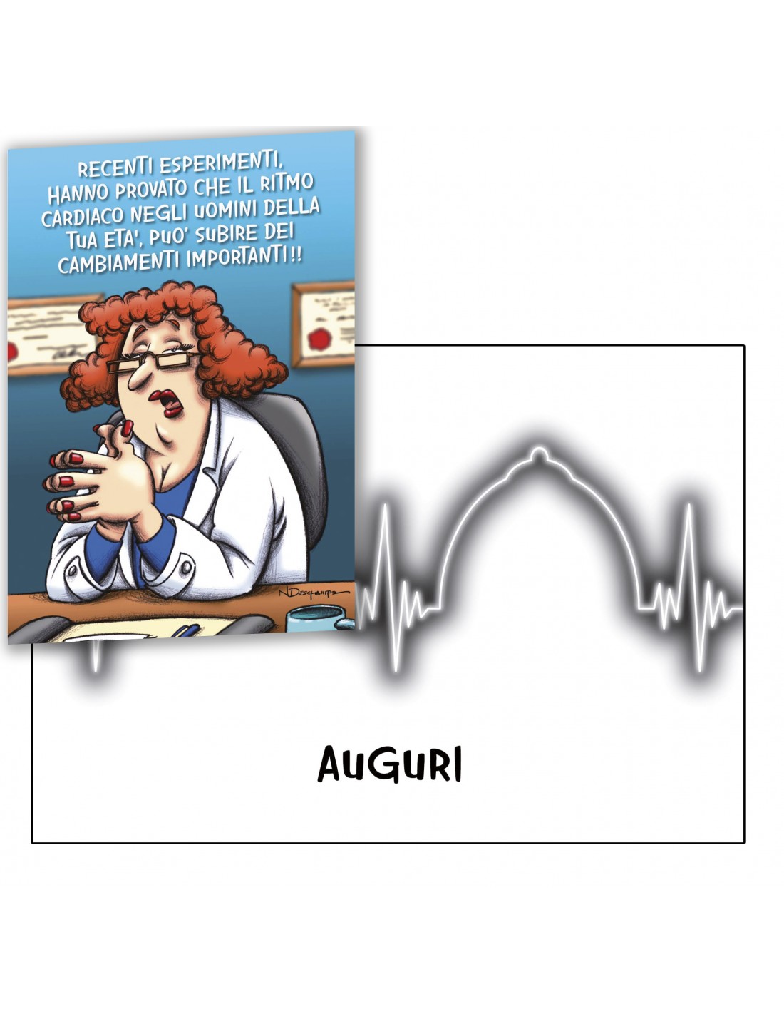 In copertina, un'immagine versione "cartoon" di una Dottoressa specializzata in sexy Cardiologia, che dopo un'accurato ed ipotetico elettrocardiogramma del festeggiato, lo mette al corrente di un insolito e divertente importante dato sul suo "maniacale" battito cardiaco