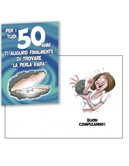 Questo biglietto d'auguri divertente per i 50 anni di lei si aggiunge alla variegata serie di biglietti d'auguri spiritosi e ad alto tasso di ironico erotismo.