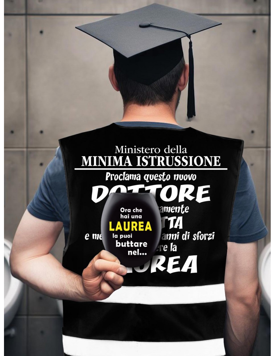 Se ti senti costantemente al centro dell'attenzione e desideri condividere con tutti l’arrivo della tua benedetta Laurea, ecco un capo d'abbigliamento unisex che non può mancare per celebrare il tuo successo, accompagnato da un biglietto augurale a forma di WC