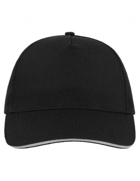 Berretto in cotone nero con visiera dal profilo bianco, taglia unica con chiusura in velcro regolabile.