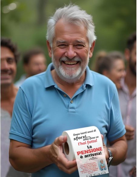 Ecco un rotolo unico nel suo genere, pensato per regalare sorrisi e  celebrare l’ agognata Pensione con ironia.Non fiori...niente biglietti... basta cravatte.