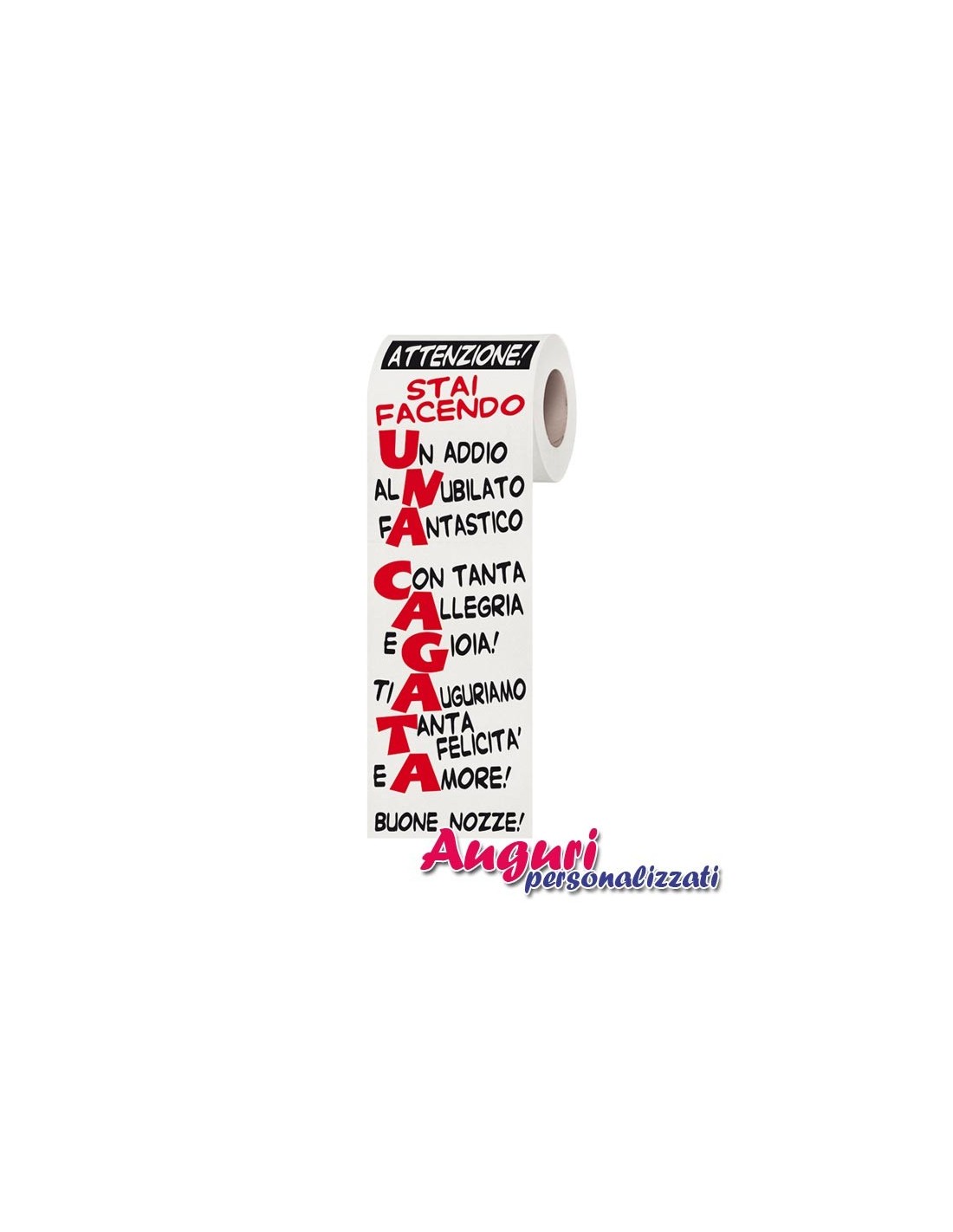 La carta igienica per la festa di addio al nubilato è un'idea originale e simpatica per un regalo: certamente la scelta ideale per una celebrazione tanto goliardica. Il prodotto è caratterizzato da scritte divertenti e vivaci, perfette per attirare l'attenzione e per suscitare le risate della festeggiata. Con un simile omaggio, l'addio al nubilato diventerà un'occasione senza dubbio indimenticabile. Acquistando questo gadget avrai la possibilità di stupire la destinataria e di portare alla festa una buona dose di allegria.