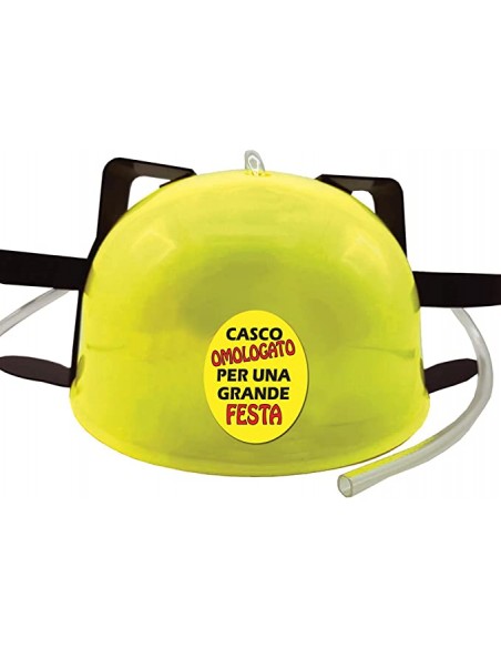 Fin dall'inizio della gran baldoria, indossa questo nostro casco porta lattine, accessorio a dir poco indispensabile che ti permettera' di ballare, gironzolare tra gli invitati firmando autografi, mangiare, stringere mani e soprattutto di bere a mani libere, tra un boccone di torta e l'altro, grazie alla lunga cannuccia che permette di succhiare direttamente il contenuto, dalle lattine o dalle bottiglie inserite negli appositi anelli posti ai lati del caschetto ed eventualmente di bloccare con la valvola, il flusso alcoolico, quando si smette di bere.