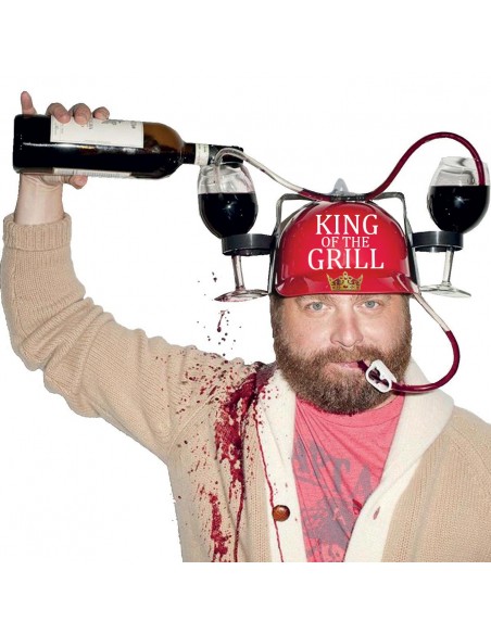 Capita di essere invitati ad un barbecue, una grigliatona o ad una festa campestre e magari ritrovarsi davanti ad un caminetto a rigirare sulla griglia salsicce e costine per tutti gli amici. Ecco , questo e' il momento di indossare questo divertente elmetto rosso con la scritta "KING OF THE GRILL"