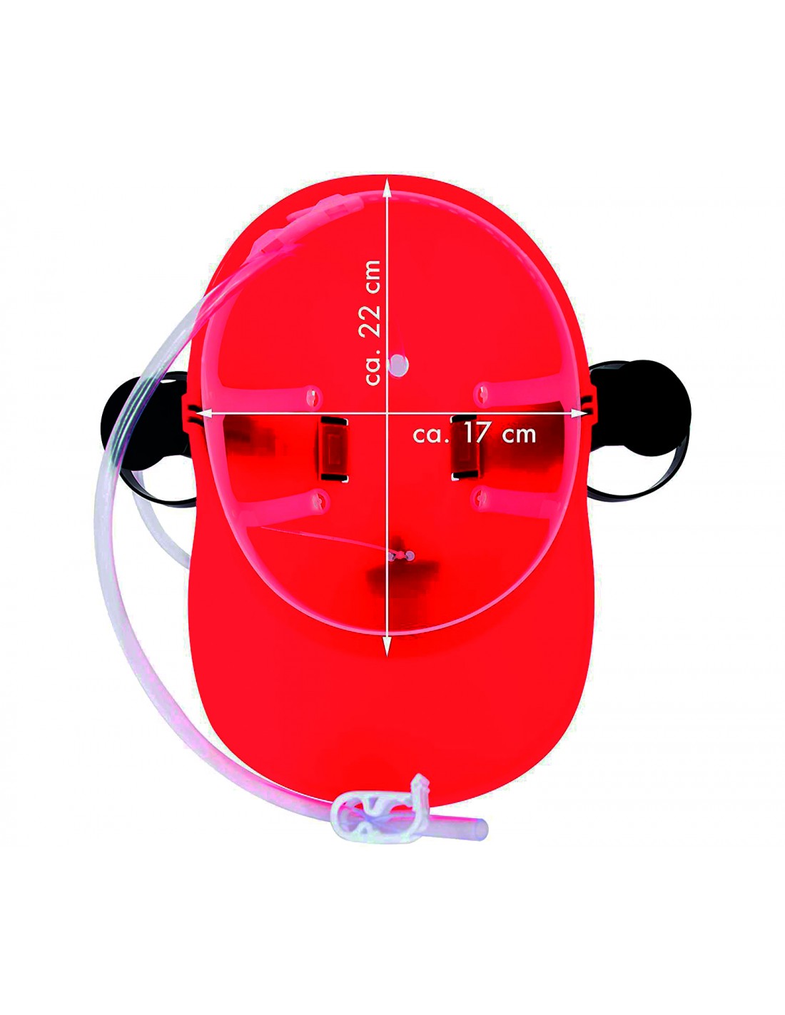 Il caschetto è dotato di due portalattine applicati ai lati e di un tubicino trasparente che funge da cannuccia.