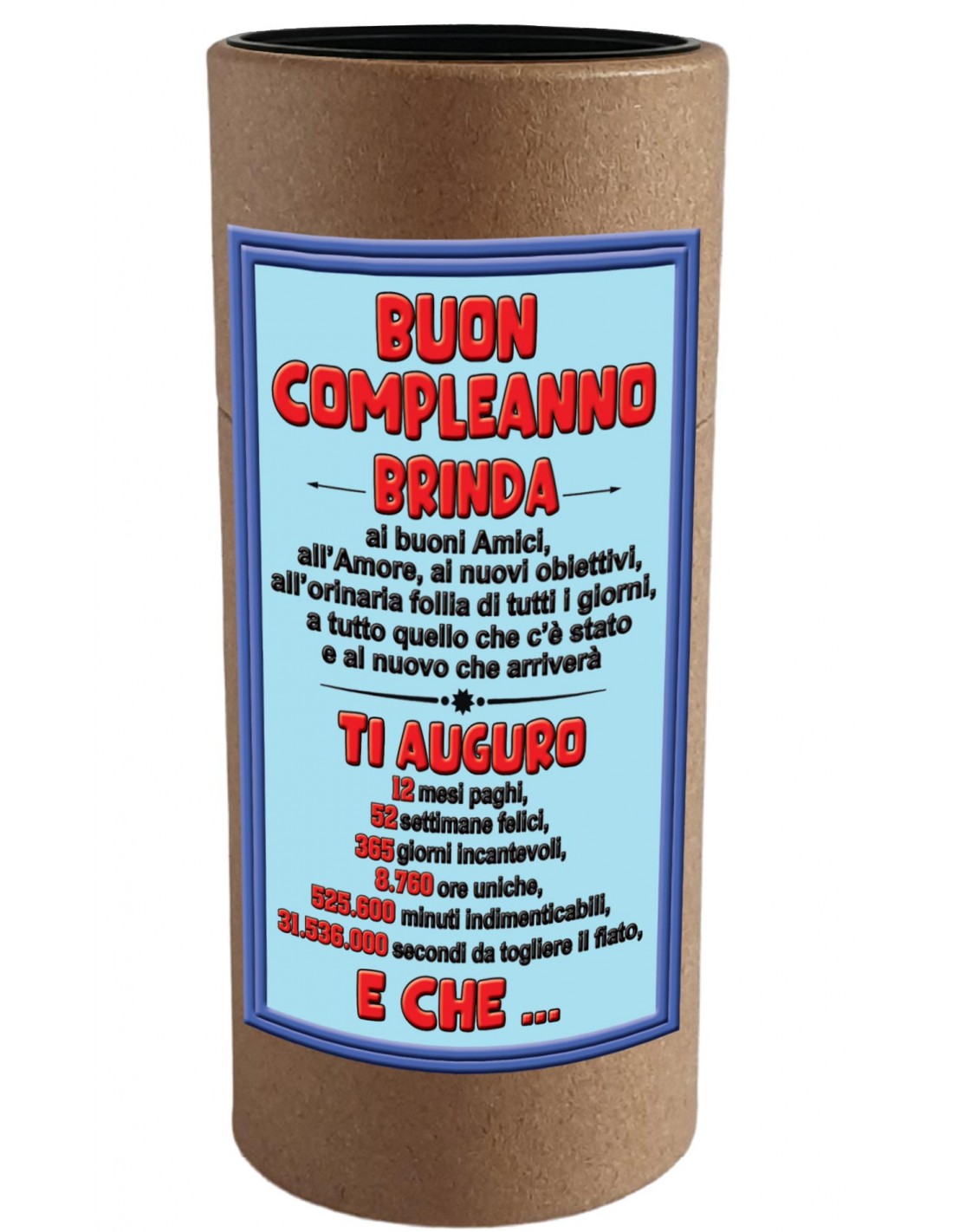 Divertente regalo, sempre gradito per brindare, celebrando il compleanno, con un’inusuale cin cin augurale.