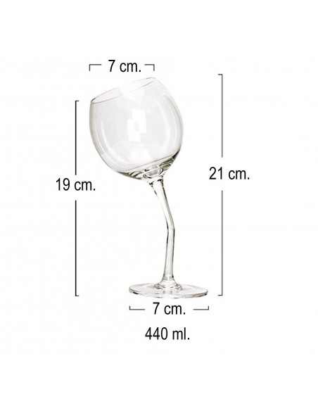 Nel caso di questo particolare bicchiere con bocca larga e gambo storto e sottile, dal baricentro modificato, nell’entusiasmante momento del brindisi, è ancora più importante tenere lo stelo ben stretto per evitare di spandere qua e la’ il contenuto.