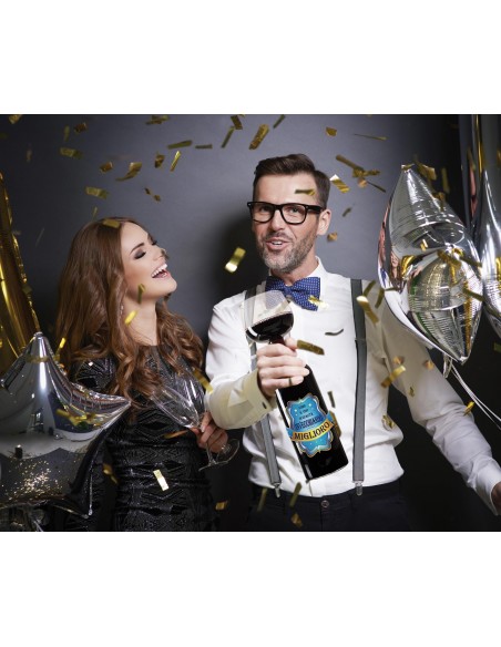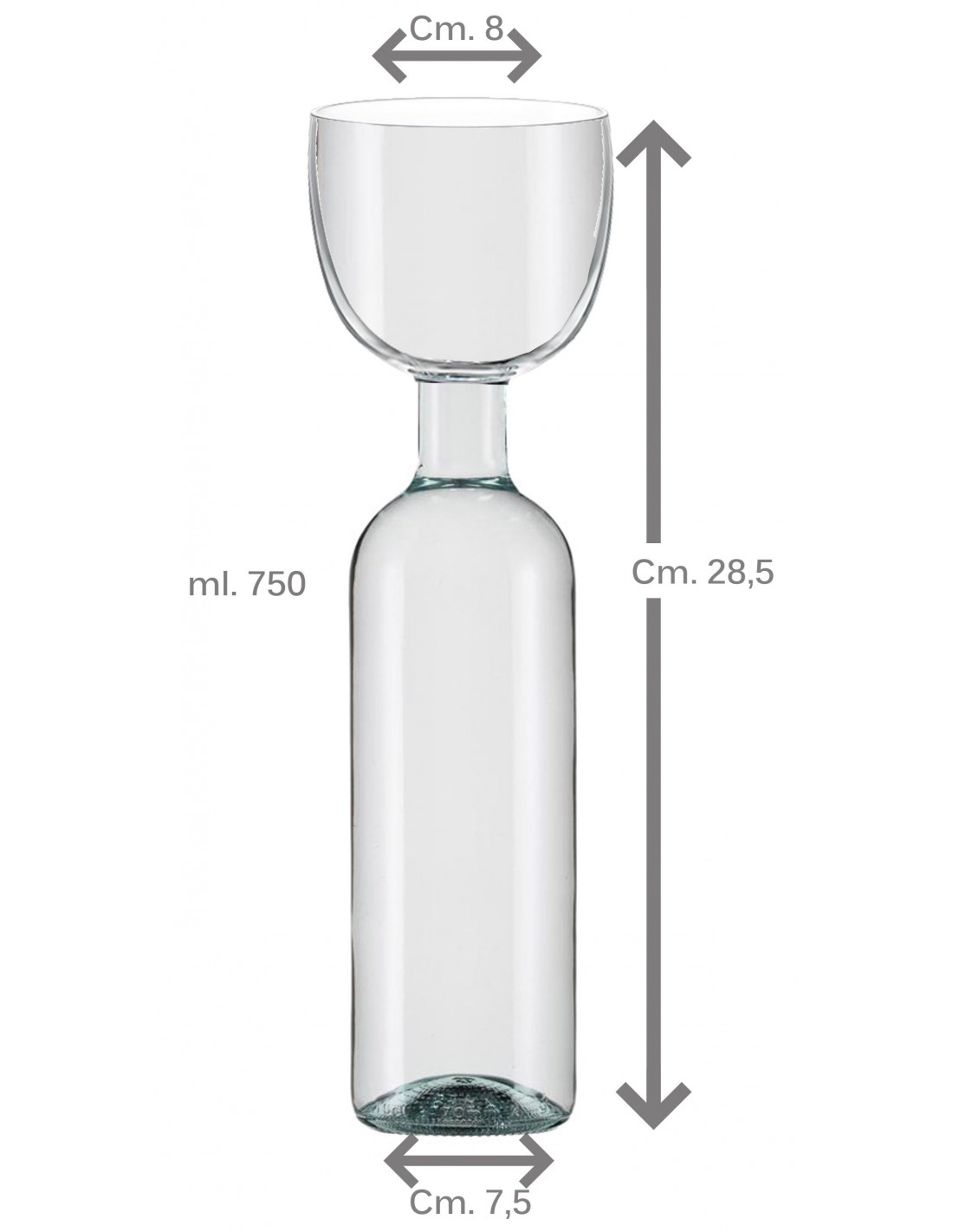 Rivoluziona i cin-cin di Compleanno, con questa particolare bottiglia in vetro soffiato, chic e divertente, collegata al calice che, al posto di avere un’esile stelo, è un tutt’uno con la bottiglia.