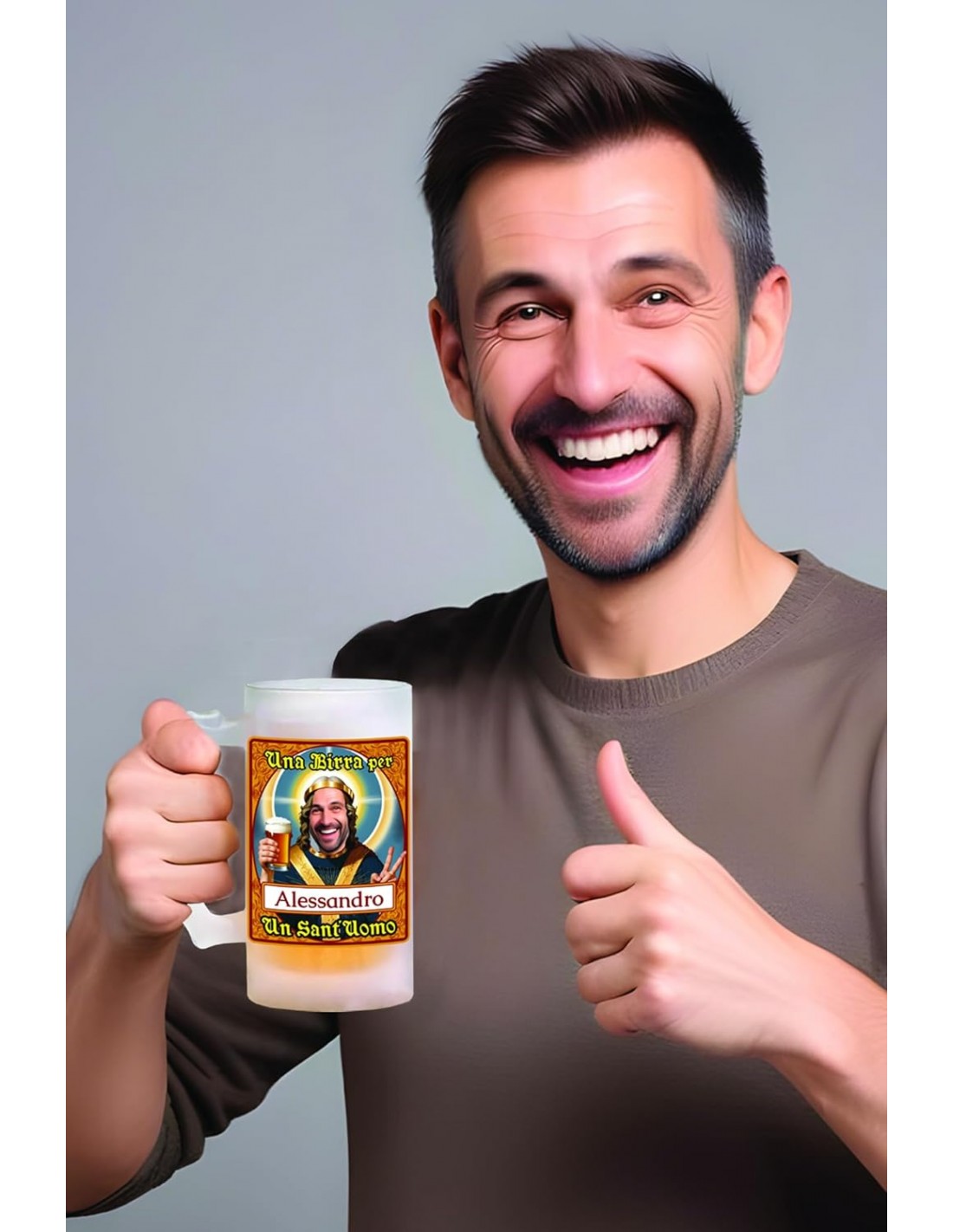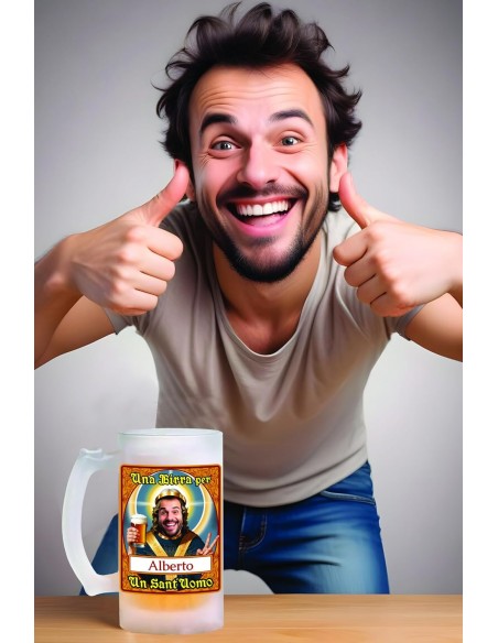 Immagina sollevare un boccale che non solo si adatta a qualsiasi occasione di festa, e vedere il tuo primo piano abbigliato da frate birraio, completato dal tuo nome.