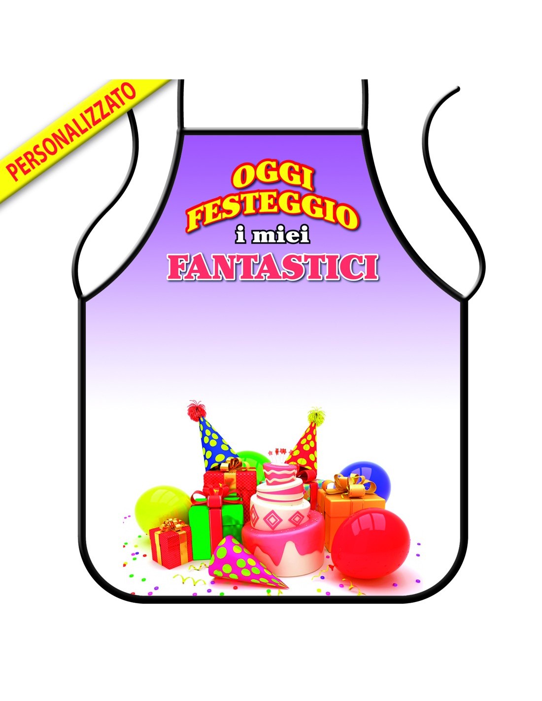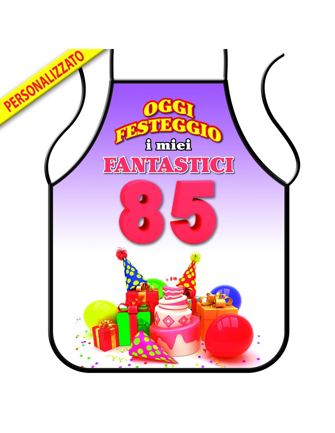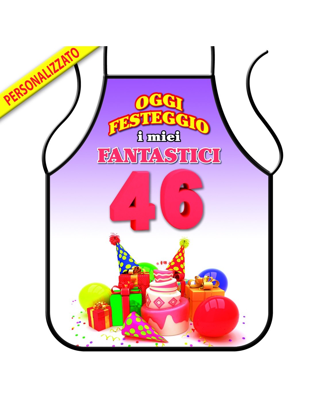 Colorato e festoso, ma soprattutto reso unico dal numero degli anni che andra' a compiere, questo grembiule da cucina rallegrerà immediatamente la serata dando il via agli apprezzamenti sulle, anche scarse, qualità culinarie del/la festeggiato/a, ma diventera' anche l'alibi per battute sulla vera eta' , che ormai sarà stata svelata.