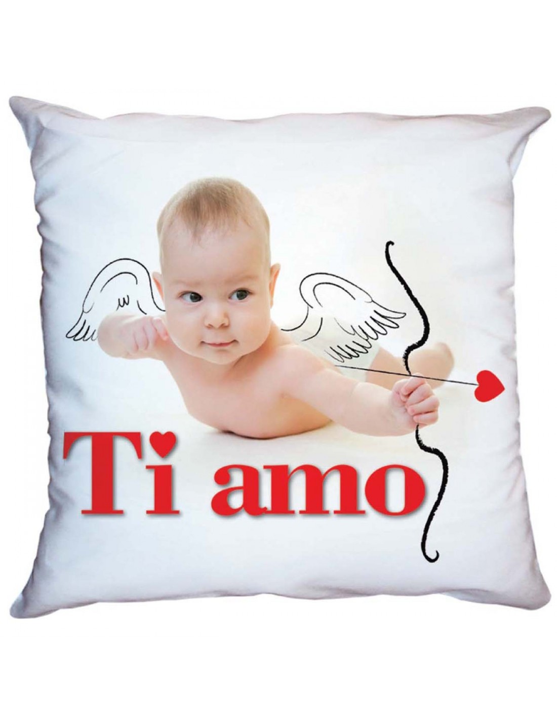 Il nostro cuscino con stampata l’immagine spiritosa del mitologico Amorino, fanciullo alato e faretrato, talvolta anche bendato…con facile allusione, che simboleggia l'amore,  e' perfetto se vuoi regalare alla tua dolce metà una vostra ricorrenza che non dimenticherà!