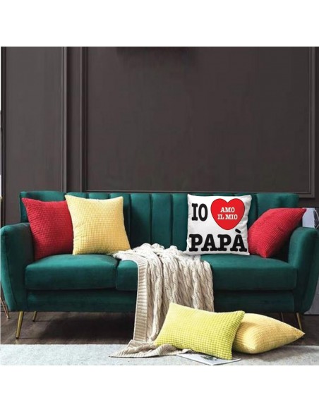 Tenero cuscino per il papà, con cuore e scritta IO AMO IL MIO PAPA', per dimostrare al tuo genitore speciale... tutto il tuo affetto!