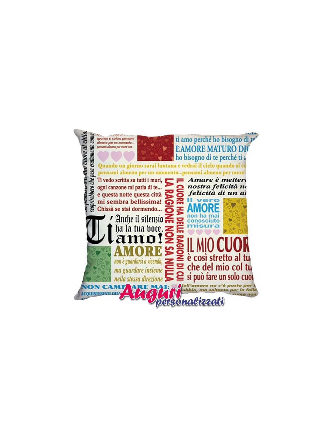 Fai gli auguri al tuo Amore e dimostra tutto il tuo sentimento in modo fantasioso e romantico, regalando il cuscino con frasi d'amore.