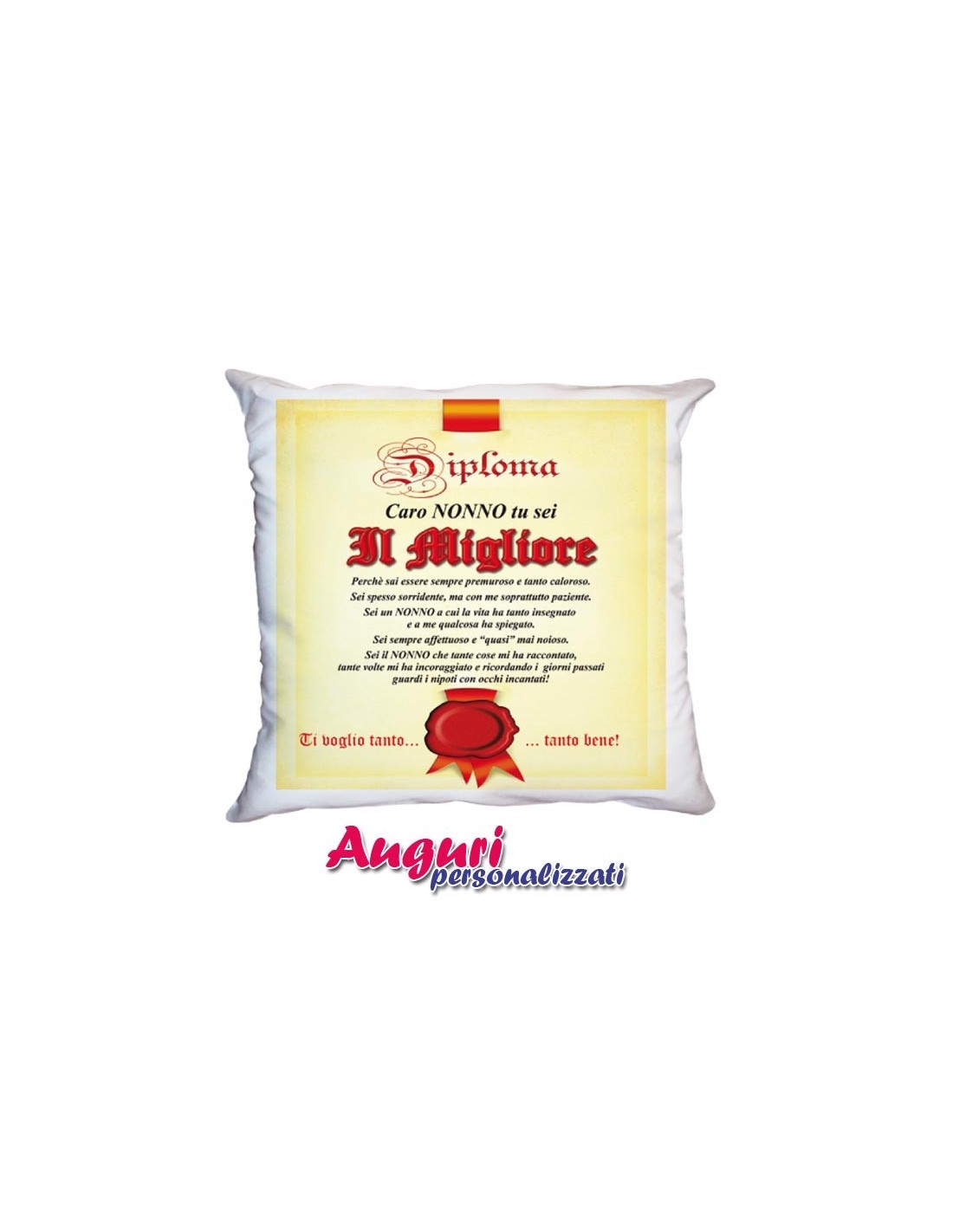 Rendilo felice e orgoglioso con un cuscino a lui dedicato, che dimostri con affettuose motivazioni tutto l'amore che anche tu provi nei suoi confronti, un diploma stampato, che descrive in maniera semplice il tuo sentimento per lui Nonno unico e irripetibile.