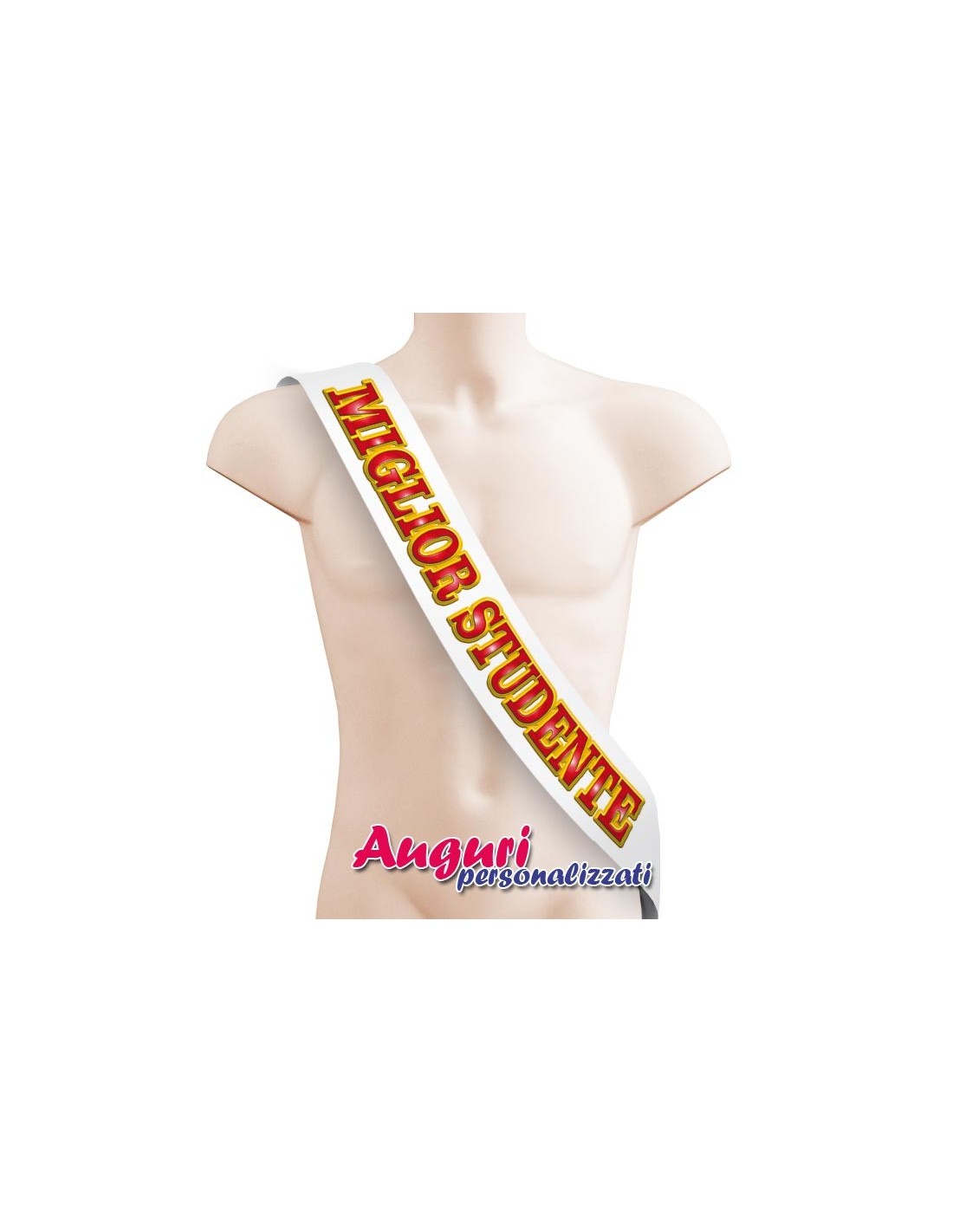 Fascia per il concorso di miglior studente divertentissima, con scritte simpatiche e personalizzabili per rendere speciale questo successo. Gli invitati possono anche firmare la fascia in modo tale da renderla un ricordo indelebile di questa giornata di allegria e divertentimento per il festeggiato. Essa è adatta anche per scherzi amichevoli che lasceranno il protagonista a bocca aperta per la bella idea che movimenterà la festa.