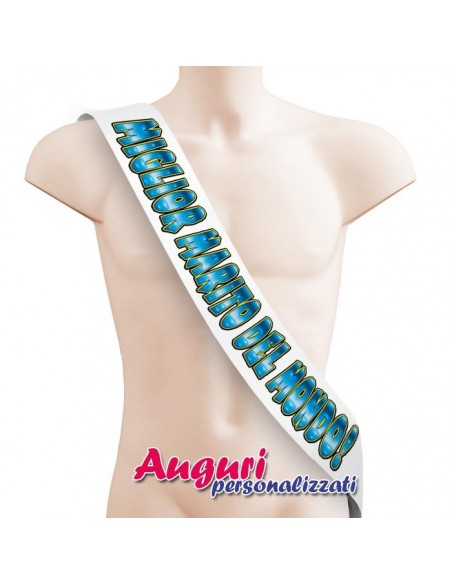La fascia per il miglior marito del mondo misura 225x12 centimetri ed è in raso bianco. Grazie alla grafica e alle stampe divertenti presenti sulla sua superficie, questo gadget diventerà per il tuo amore un regalo unico, indimenticabile e da conservare con gelosia nel corso del tempo.