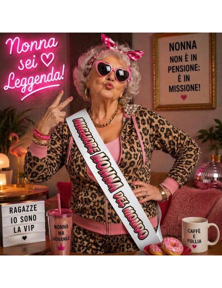 La fascia per la miglior nonna del mondo è un gadget simpatico e divertente che puoi regalare a una delle persone più importanti della tua vita. Puoi regalargliela per il suo compleanno oppure semplicemente per la festa dei nonni, in ogni modo si trasformerà in un regalo unico e indimenticabile. Trattasi di un articolo da regalo personalizzabile, su cui puoi apporci sopra la tua firma accompagnata da una dedica per esprimere tutto il tuo affetto.