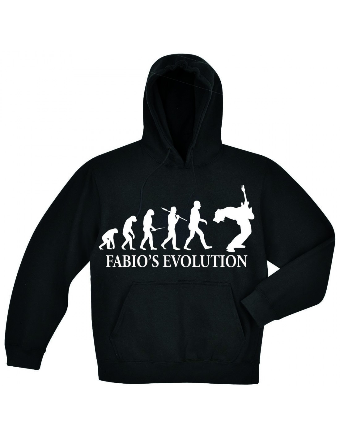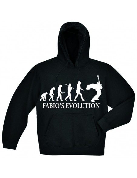 Questa felpa personalizzata con il nome del chitarrista, fa parte dell'ampia serie Evolution, caratterizzata da indumenti di cotone felpato con stampe a caldo personalizzabili con il tuo nome, il nome del tuo amico appassionato di chitarra.